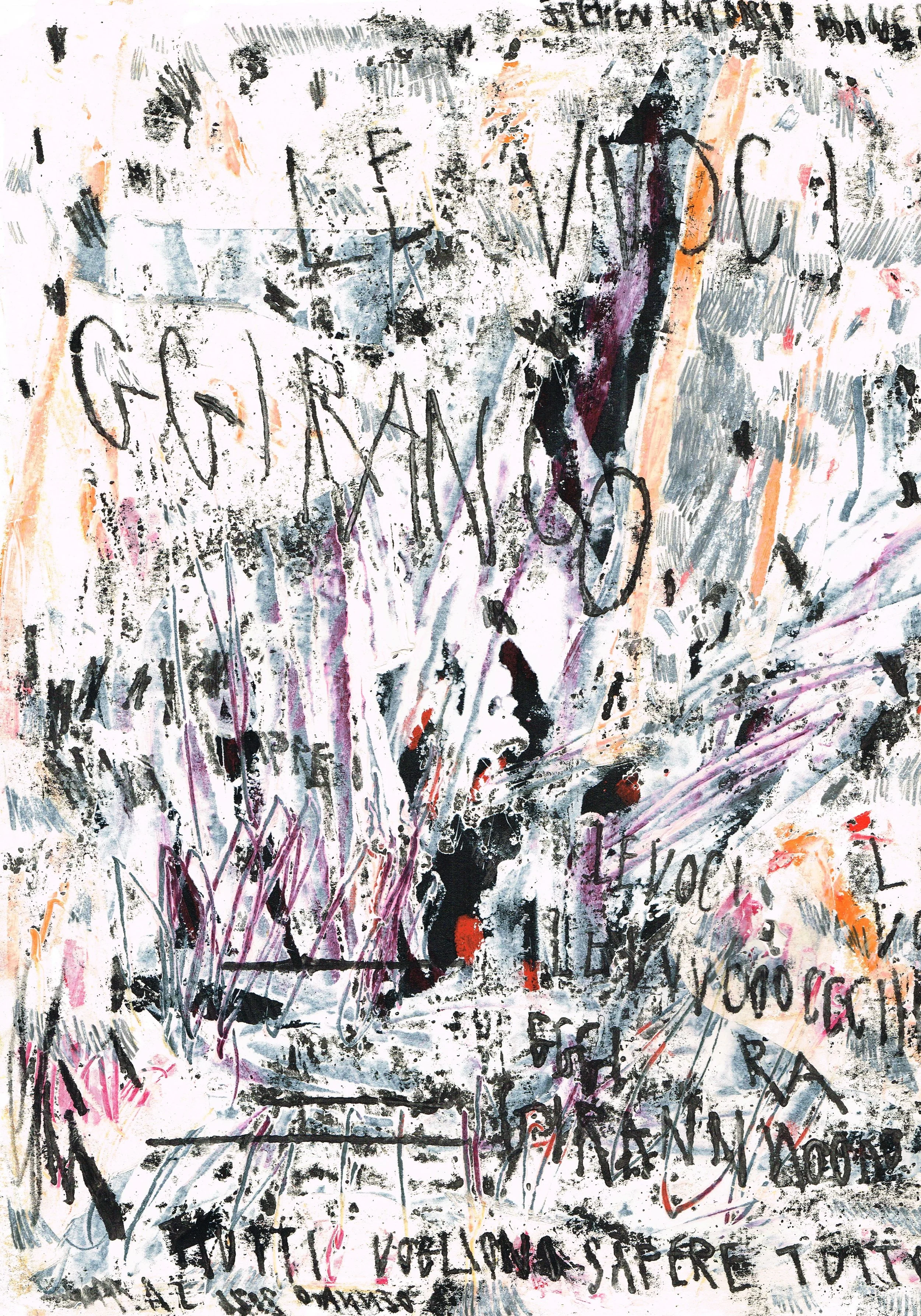 ‘Le Voci Girano’, mixedmedia on paper, 42 x 33cm, 2026