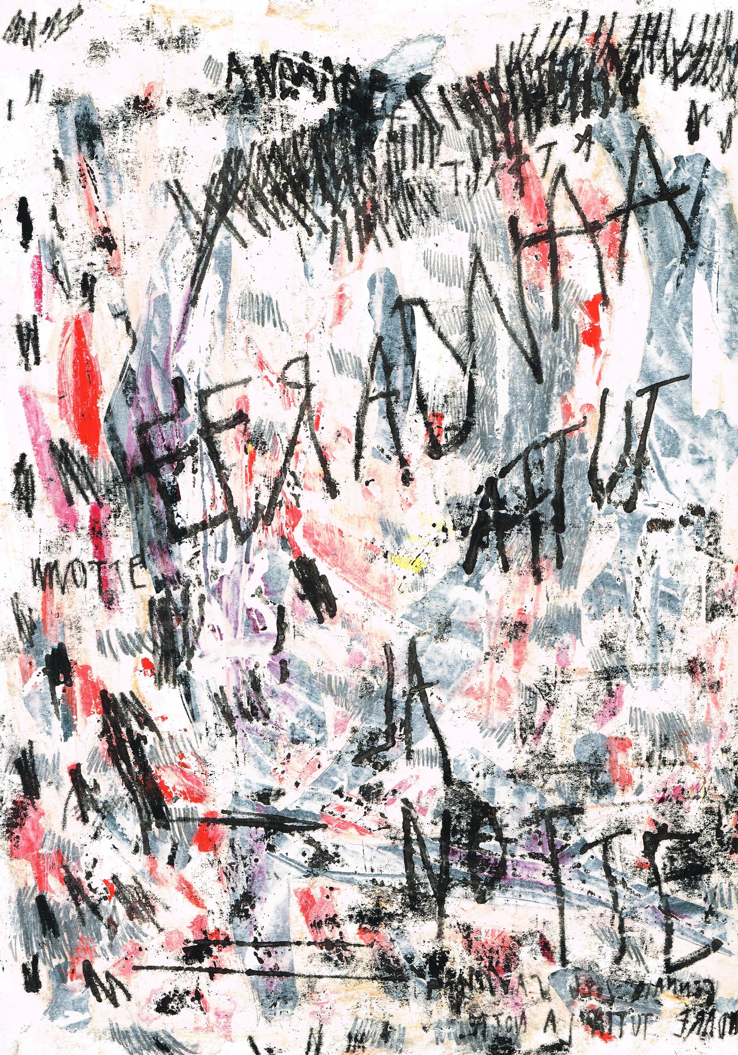 ‘Non Provarci Perche Da Una Cosa Brutta Non Esce Qualcosa Di Bello’, mixedmedia on paper, 42 x 33cm, 2026
