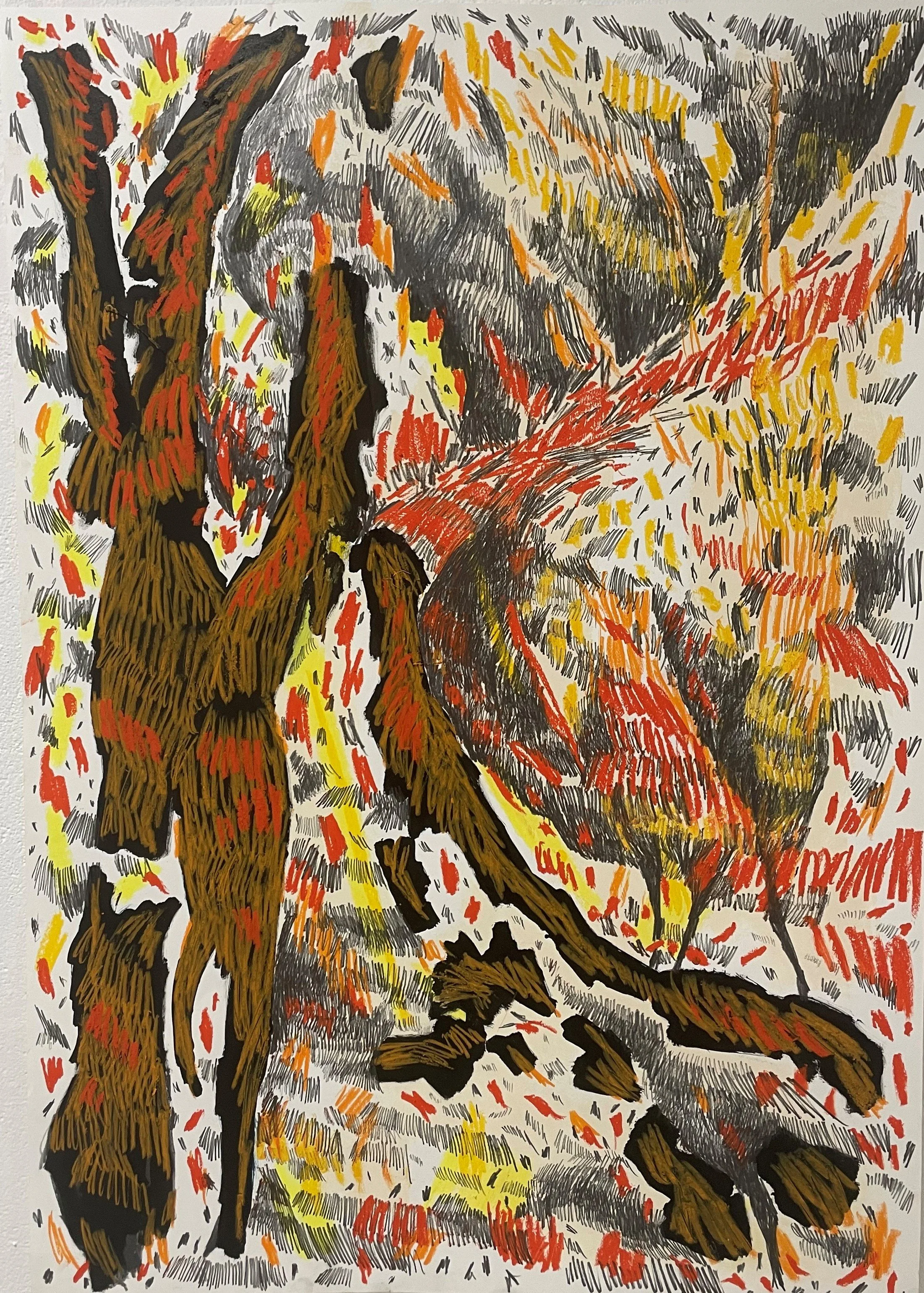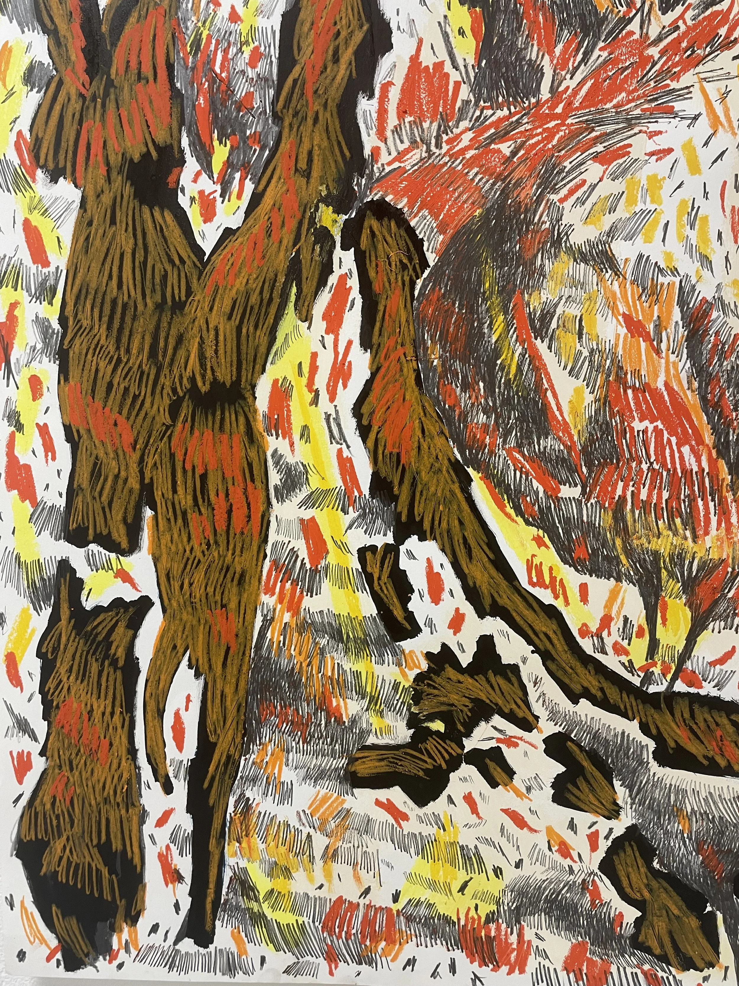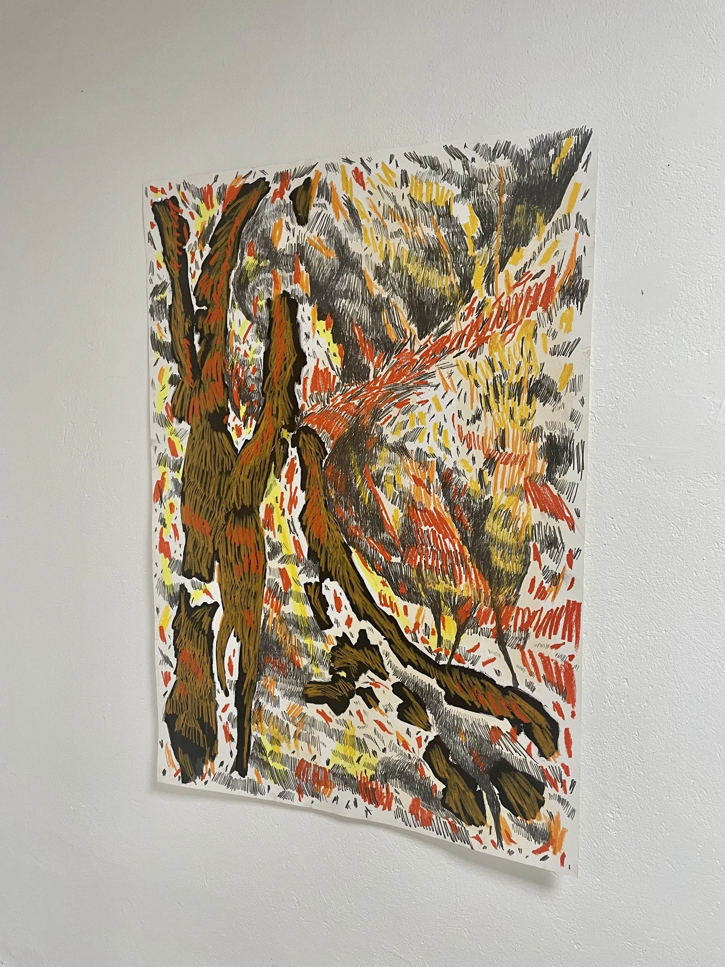 wallpaint, ink, oilpastels and graphite on canvas, 100 x 70cm, 2022
