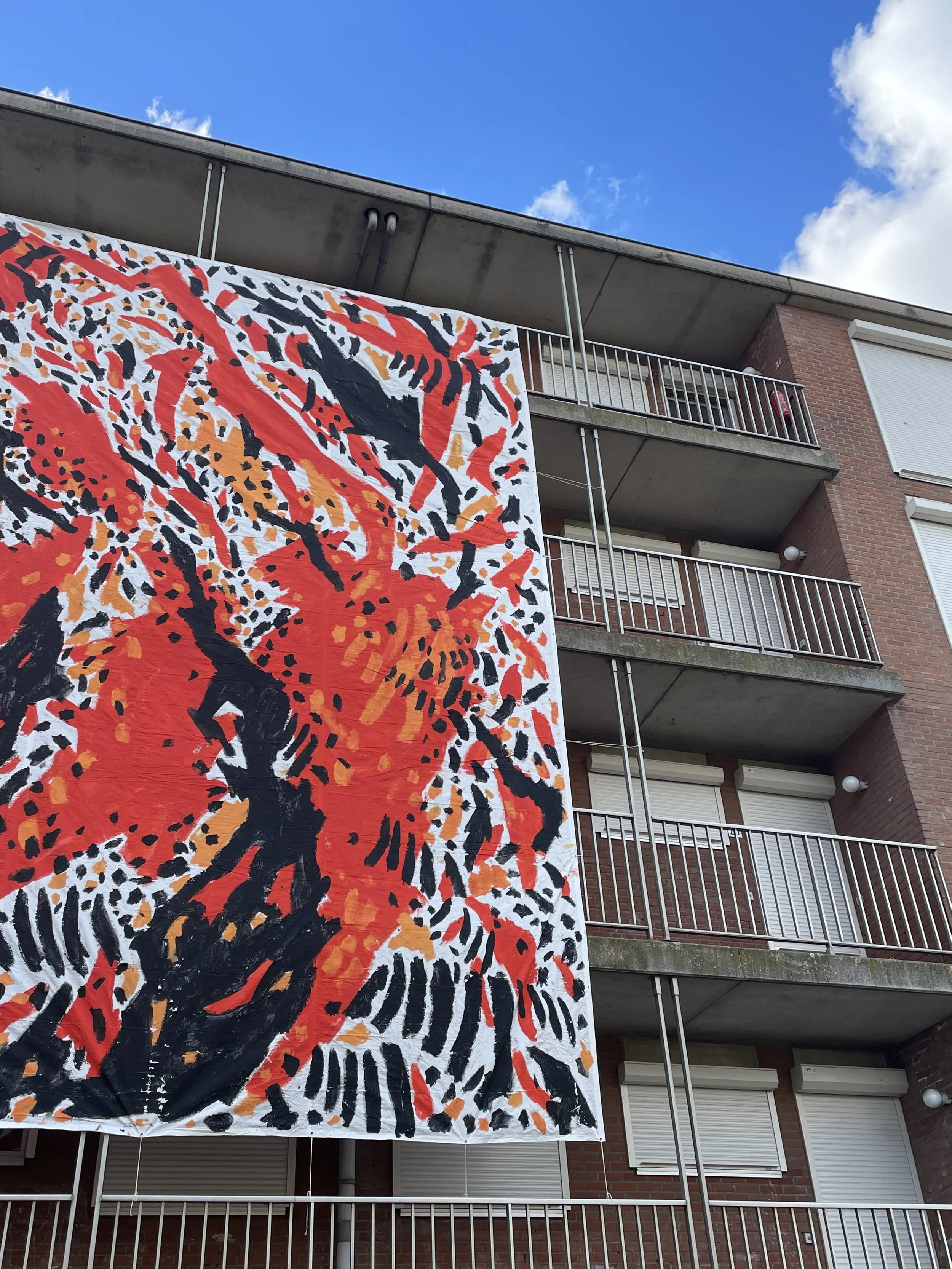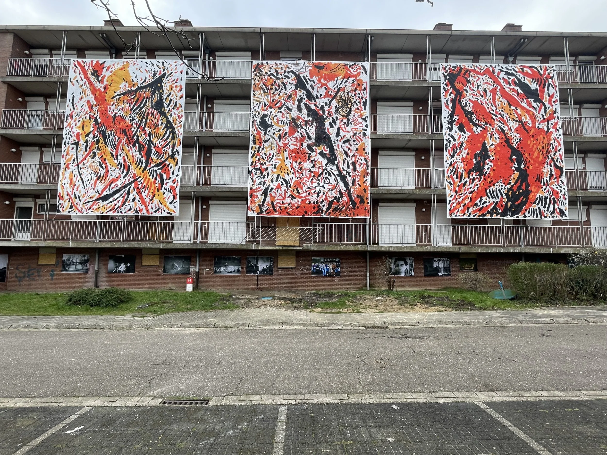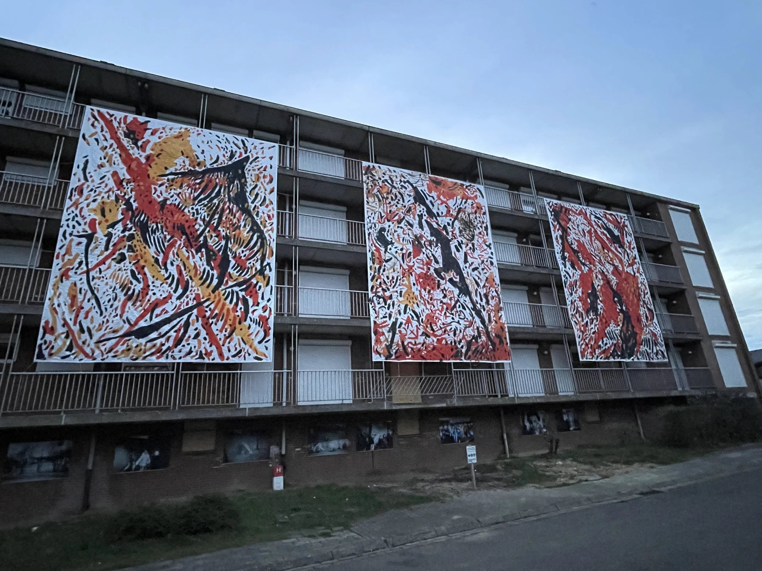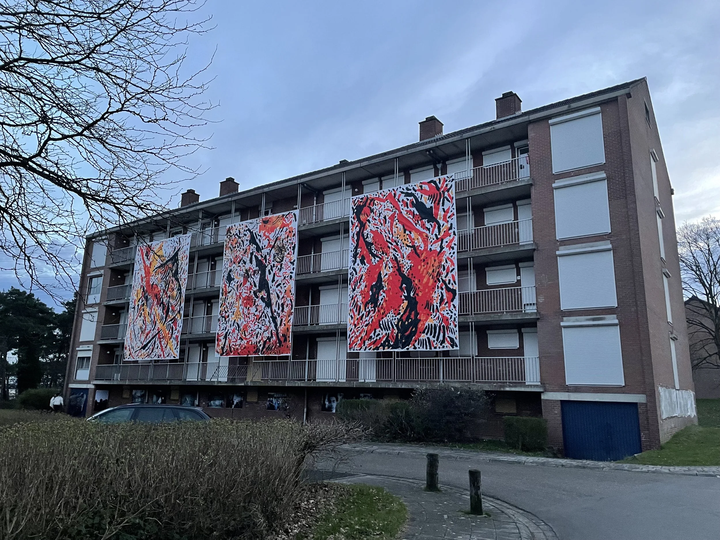 Part of the Sledderlove expo. The middle drawing was made in collaboration with the residents of the neighbourhood Sledderlo in Genk.