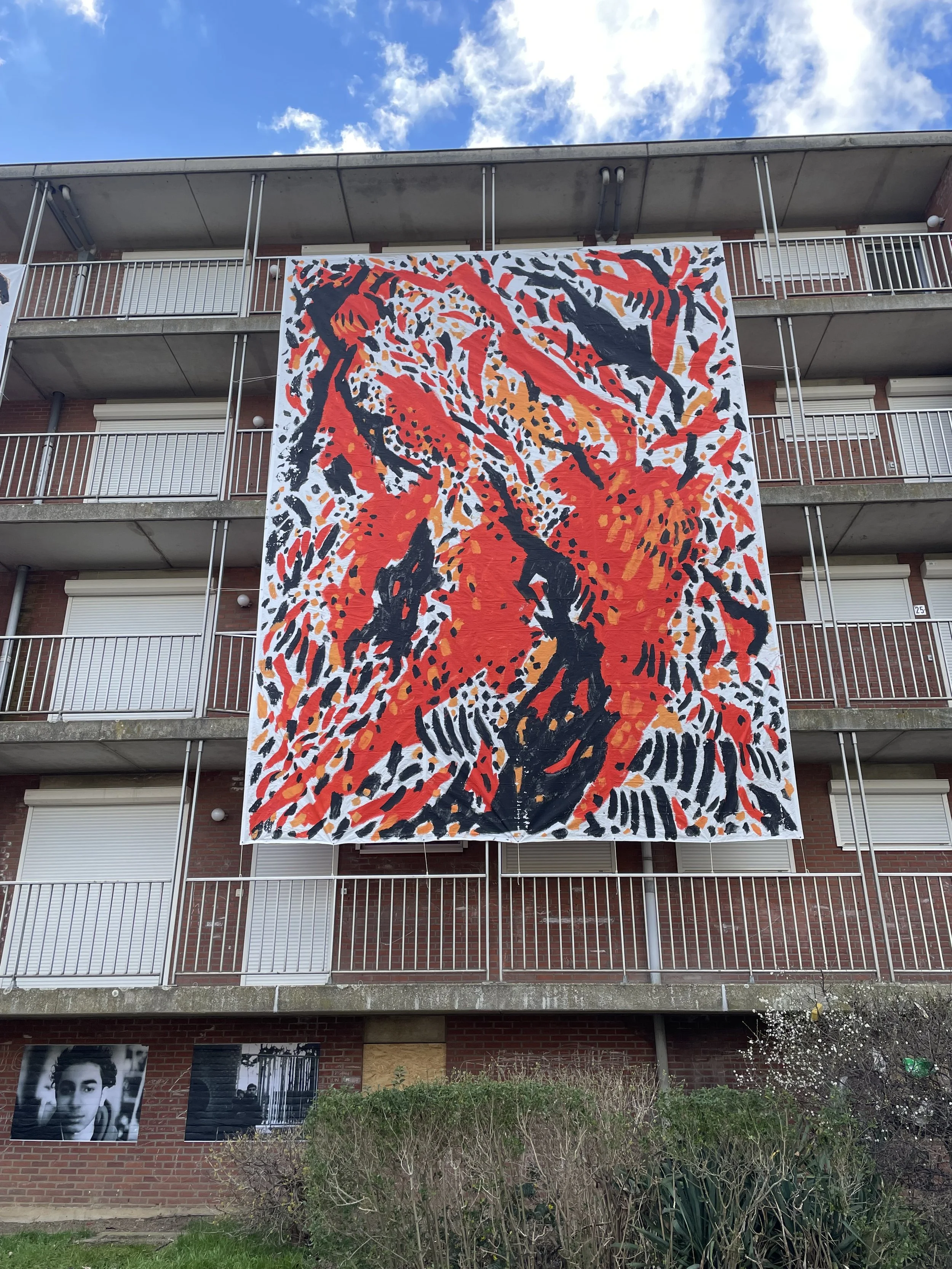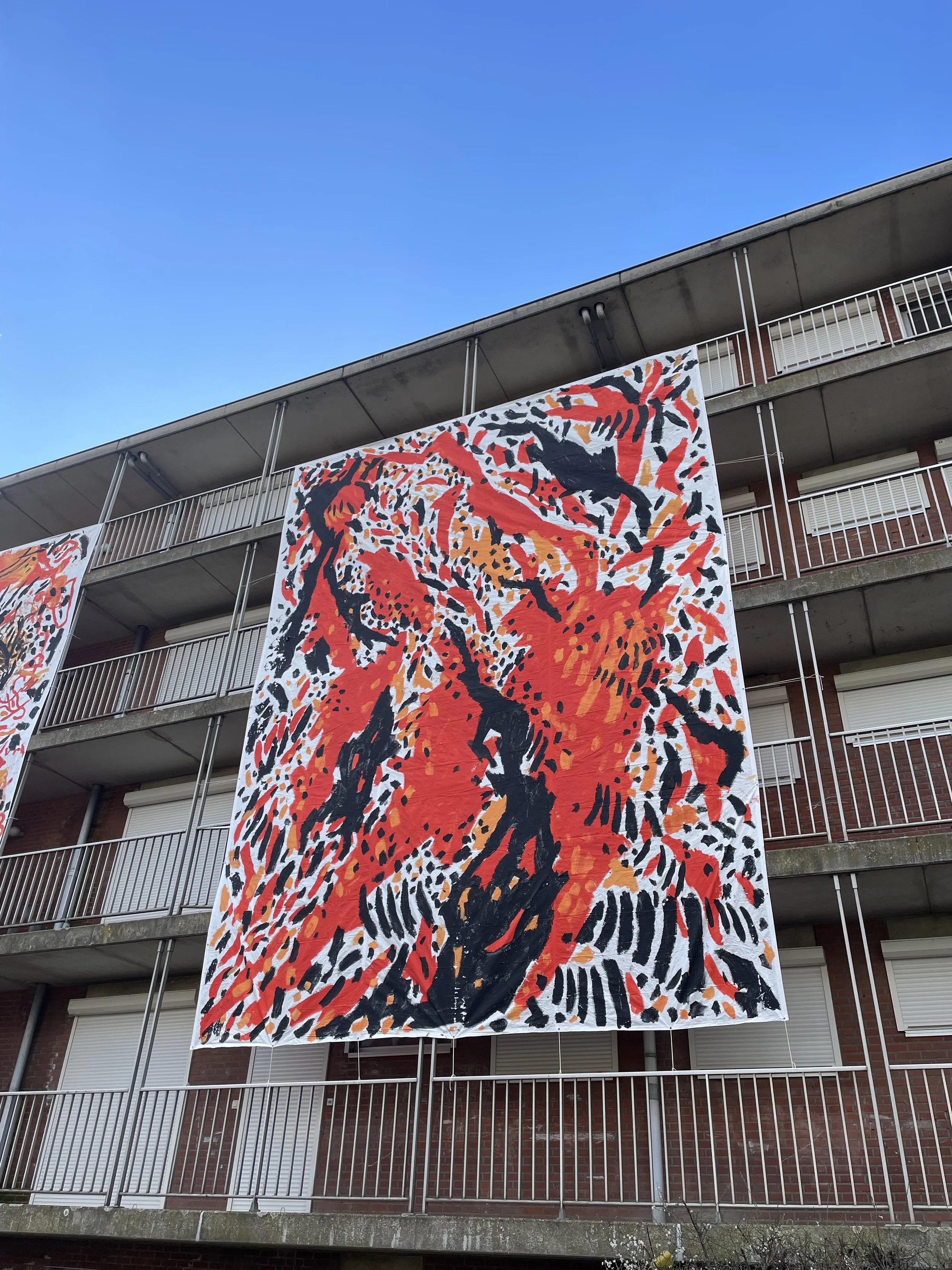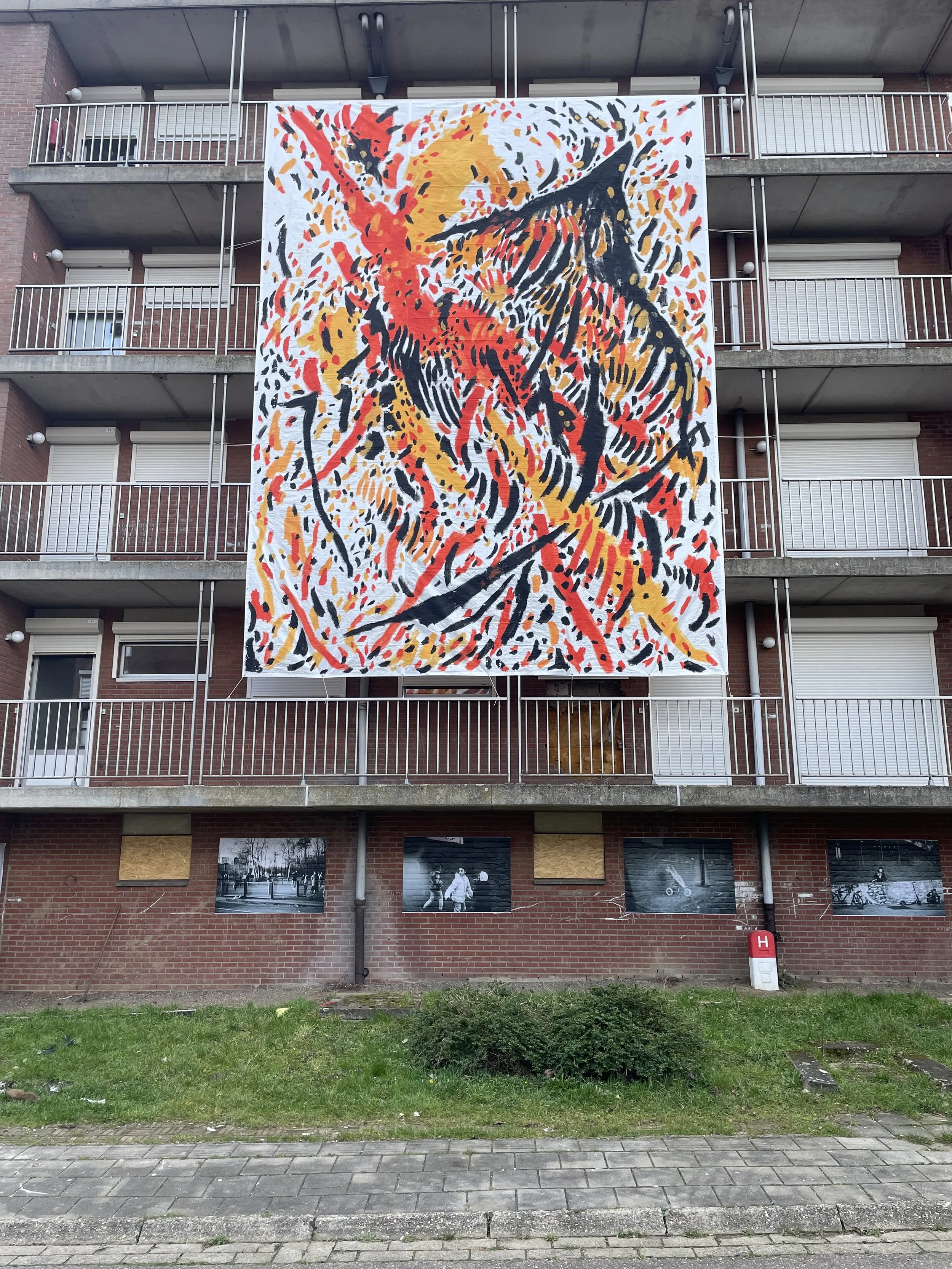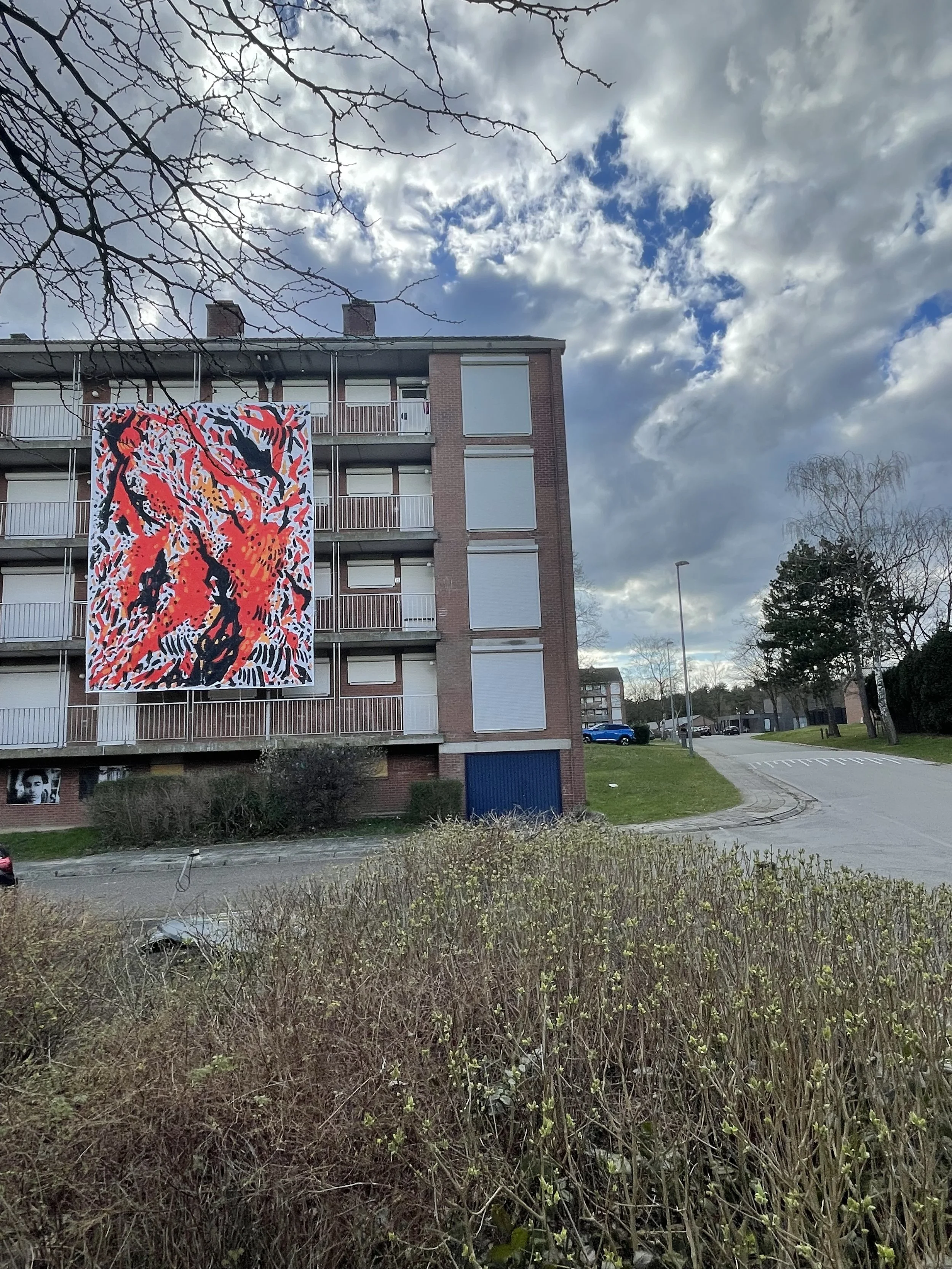 Part of the Sledderlove expo. The middle drawing was made in collaboration with the residents of the neighbourhood Sledderlo in Genk.