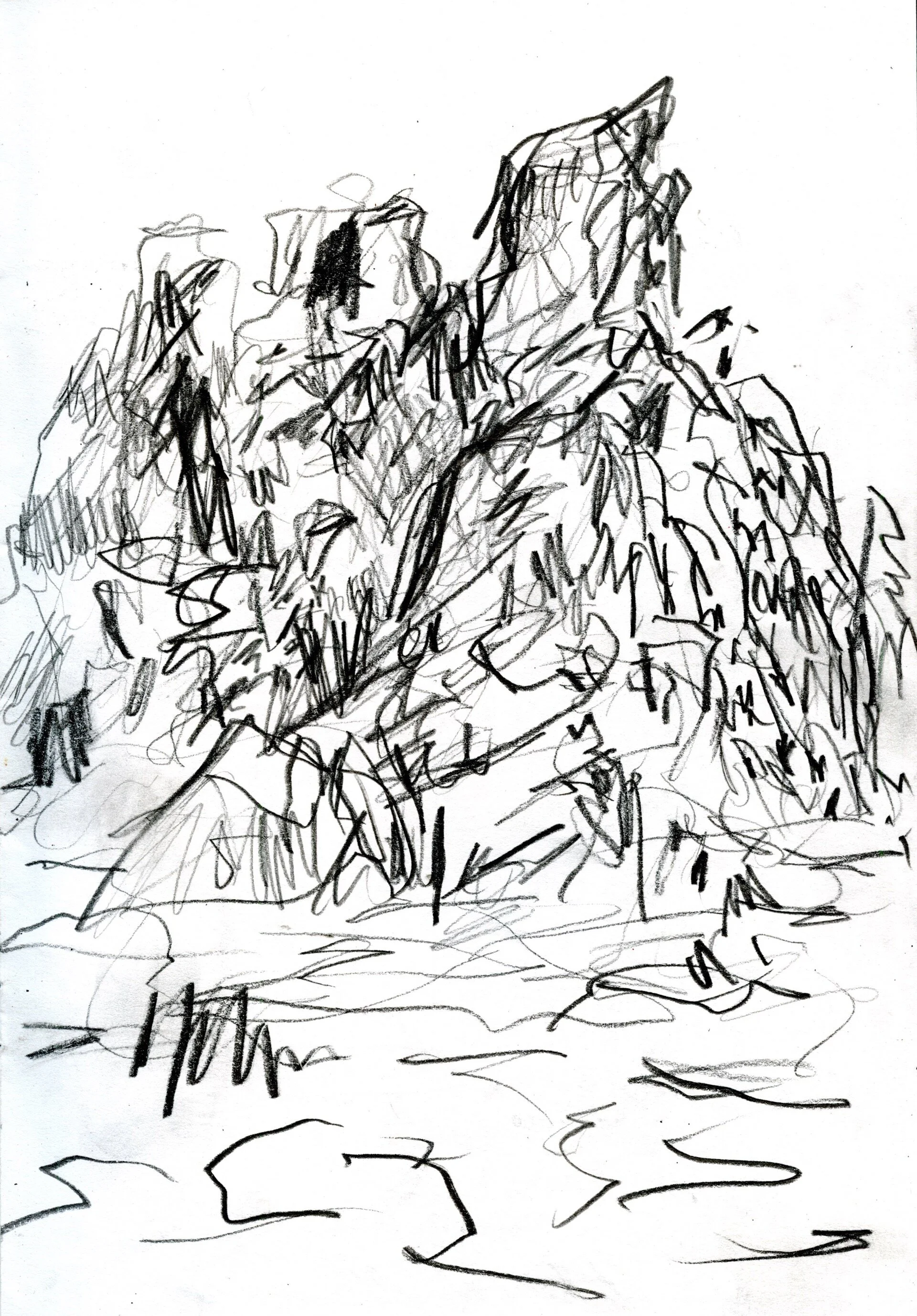 ‘Arbatax Scogli Rossi I and II’, pencils on paper, sketchbook 21 x 29,7cm