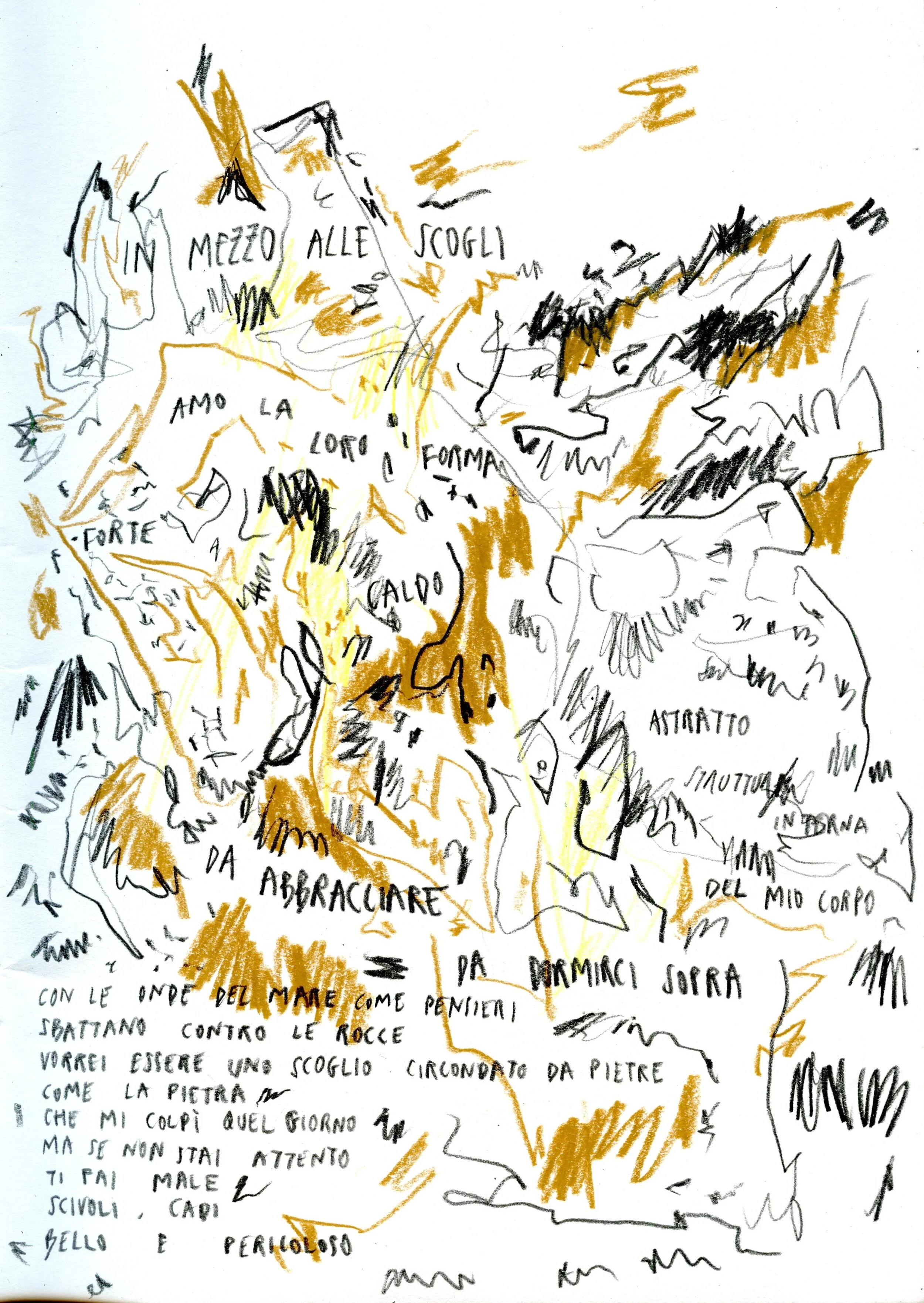 ‘Struttura di Rocce’, ‘Rocce e Mare’, ‘Struttura di Rocce II’, ‘Santa Maria al Bagno (vista dal Via Santa Croce)’, Porto Selvaggio. Pencils on paper, sketchbook 21 x 29,7cm