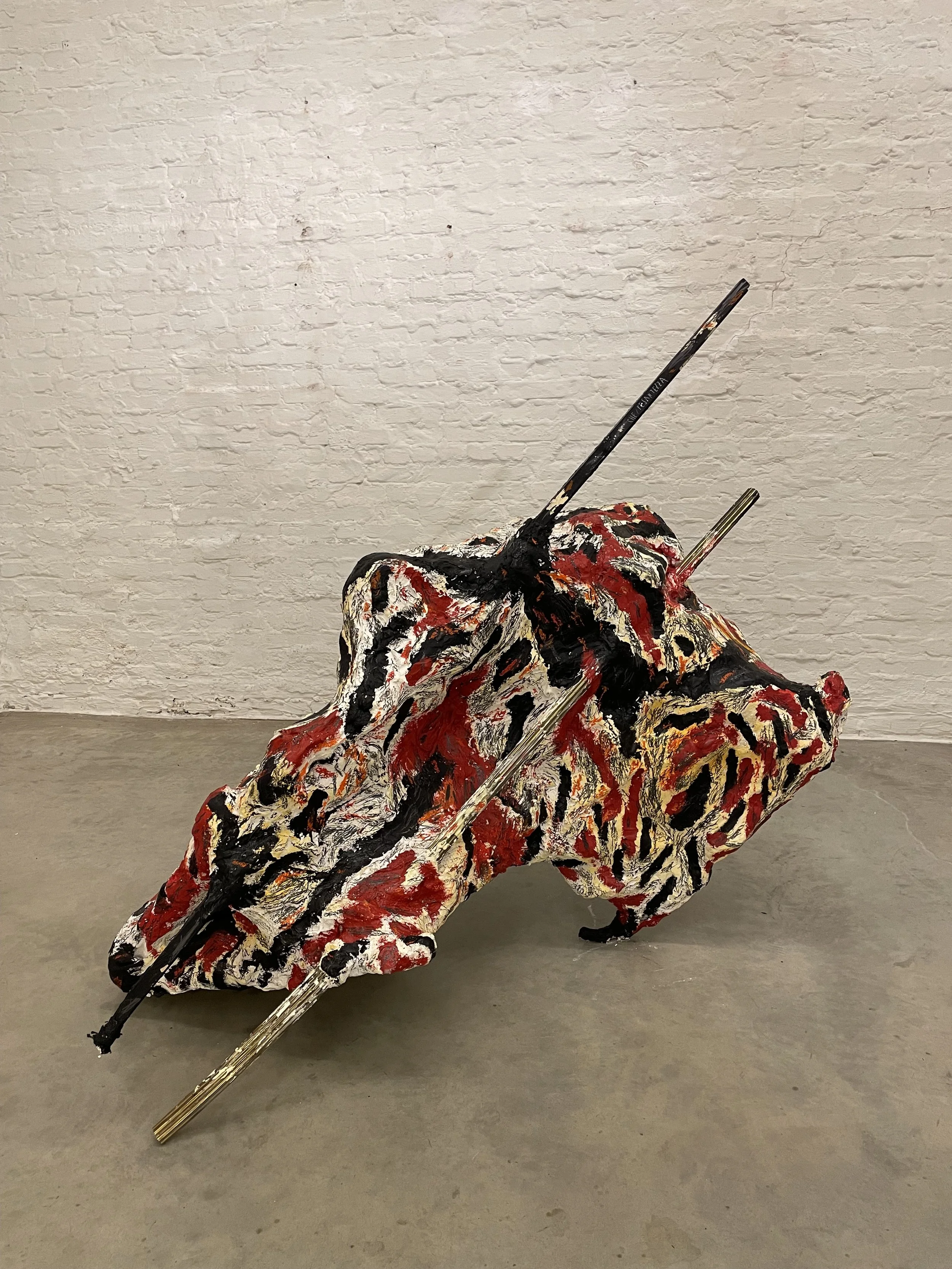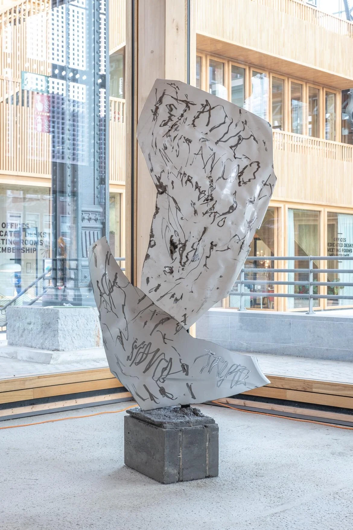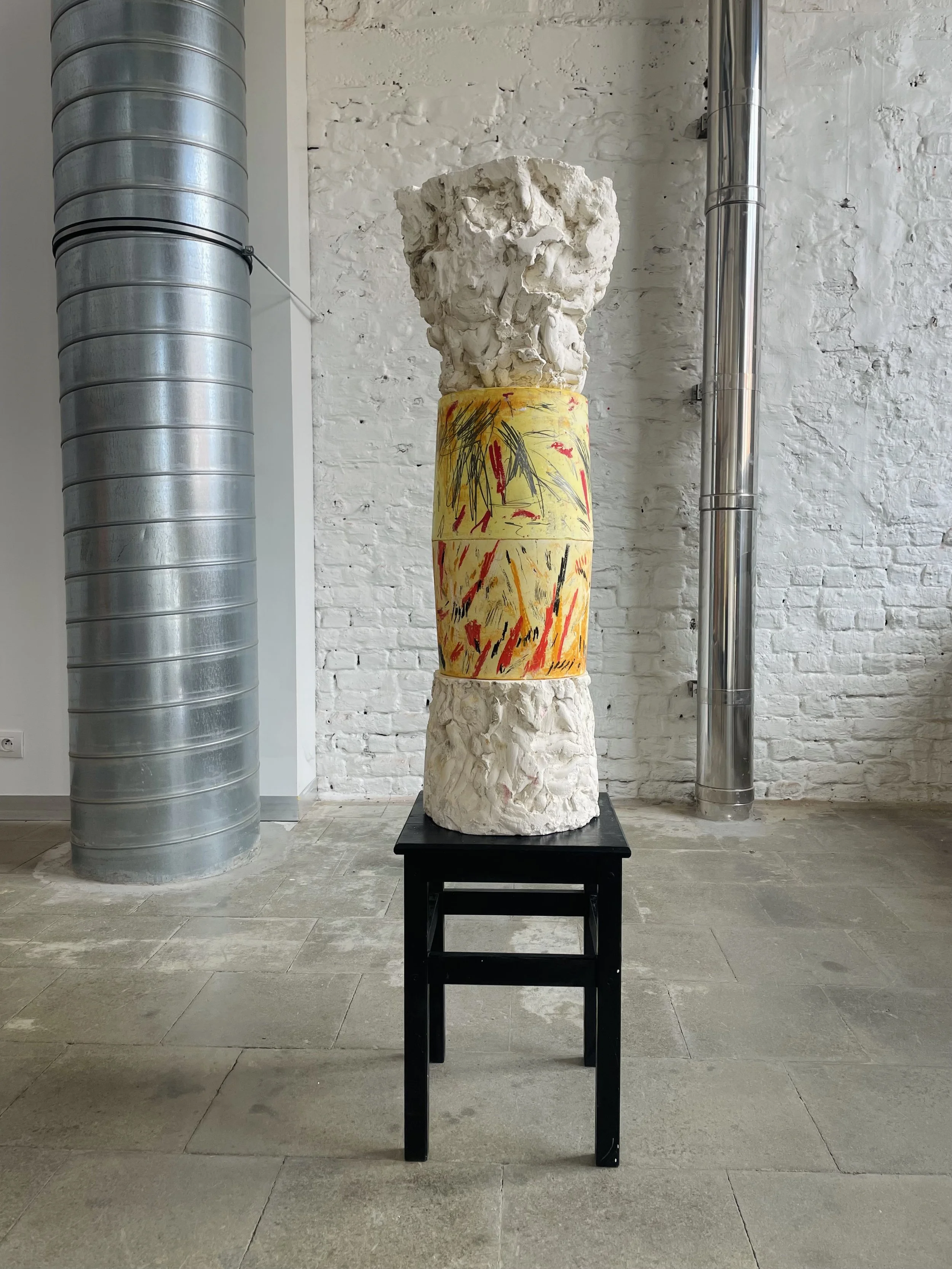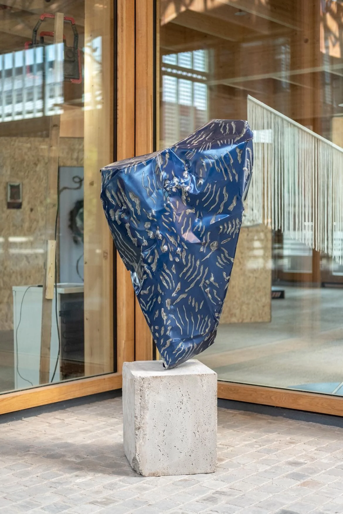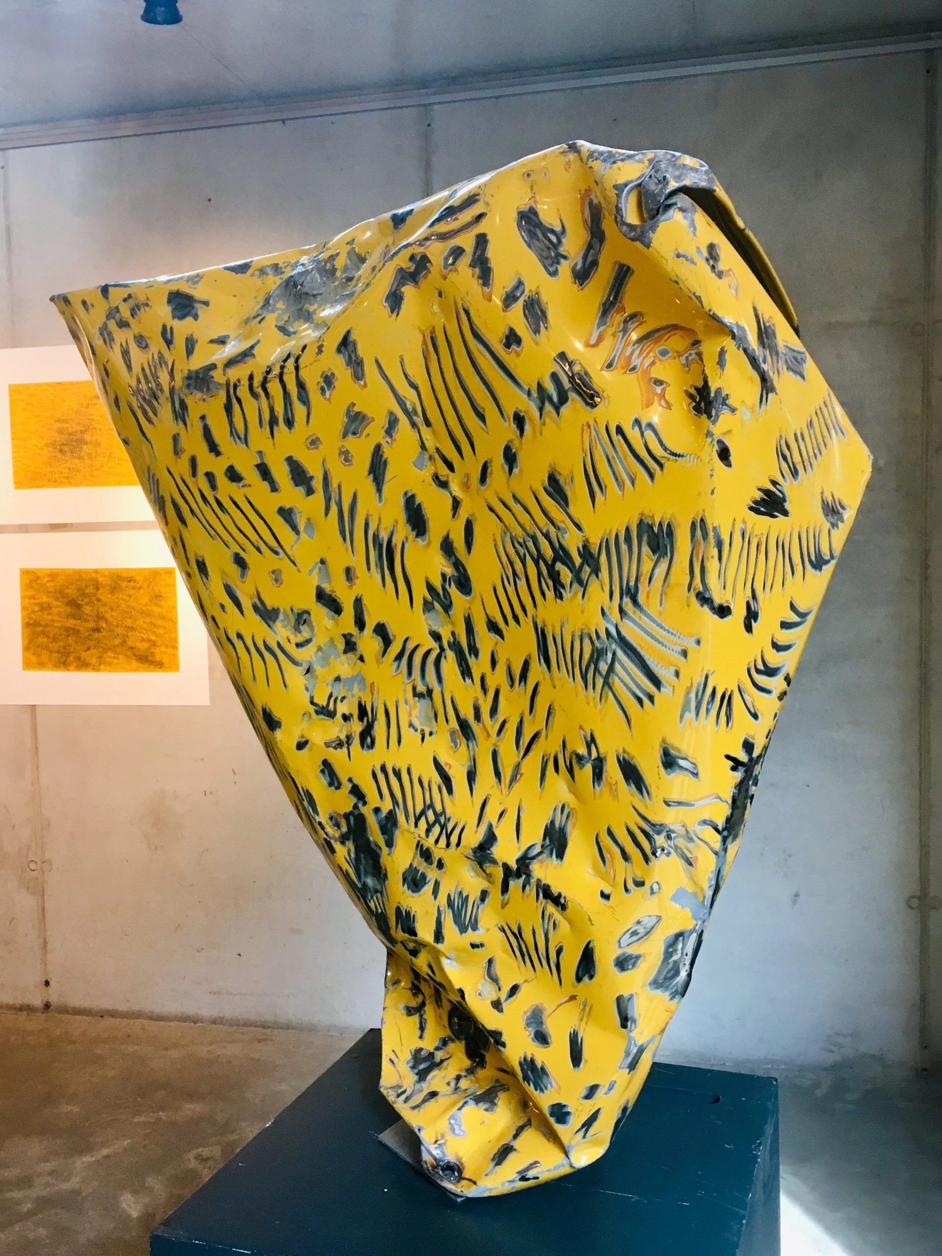 goldfoil sculpture and concrete pedestal, 145 x 60 x60cm
