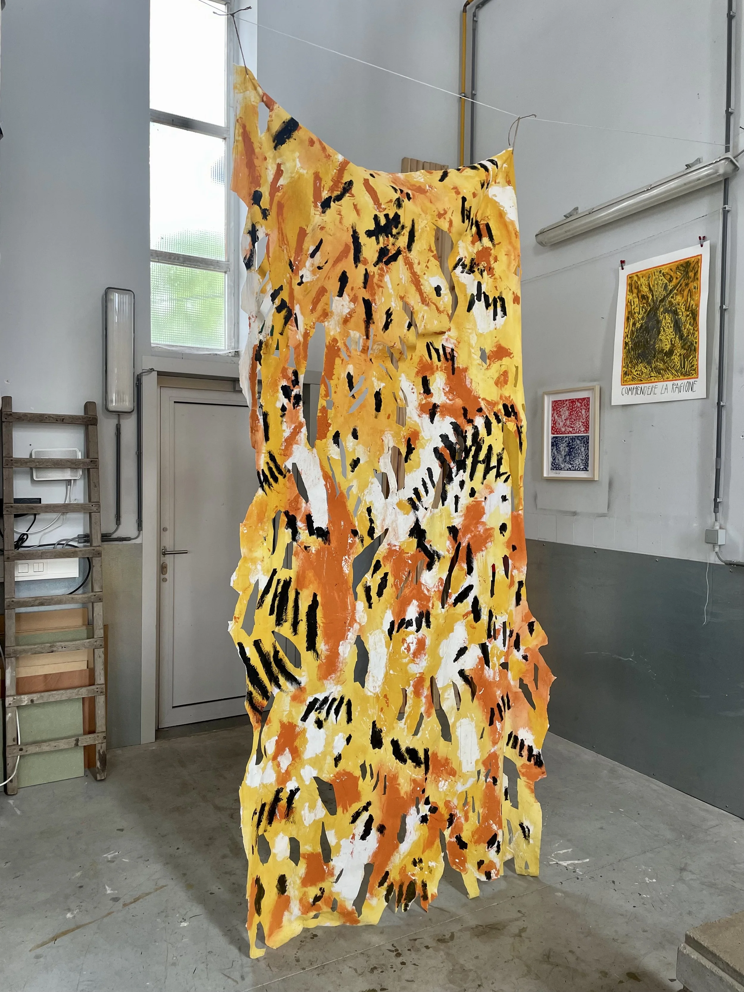 excavated earth mould with plaster and foiliage, 75 x 120cm