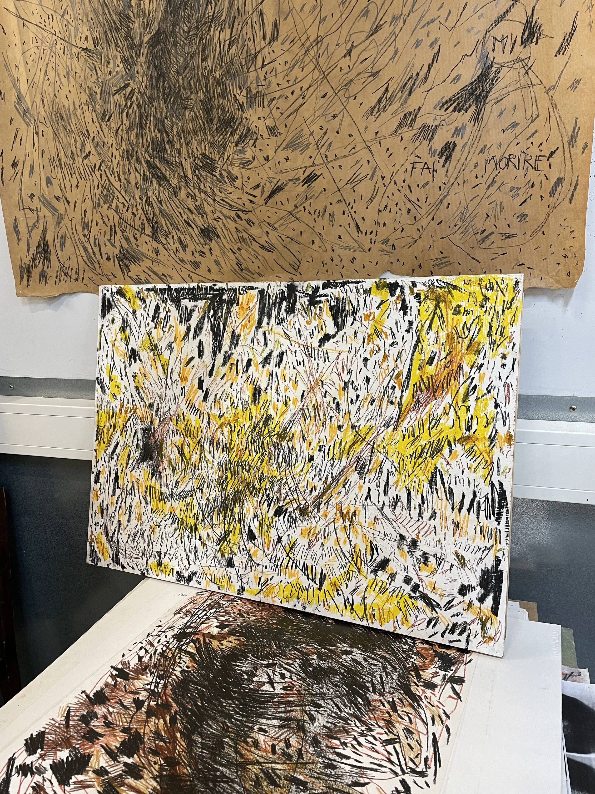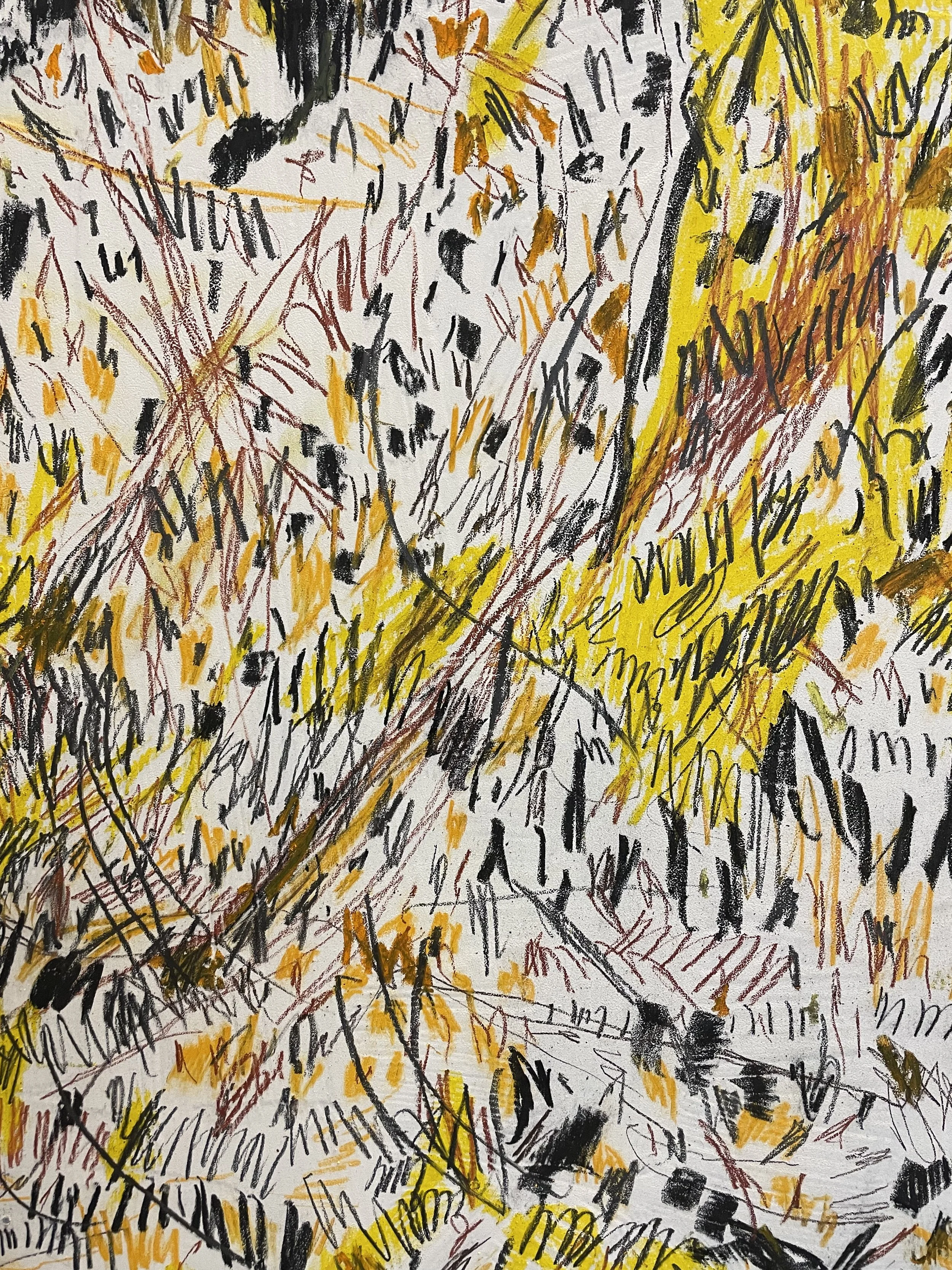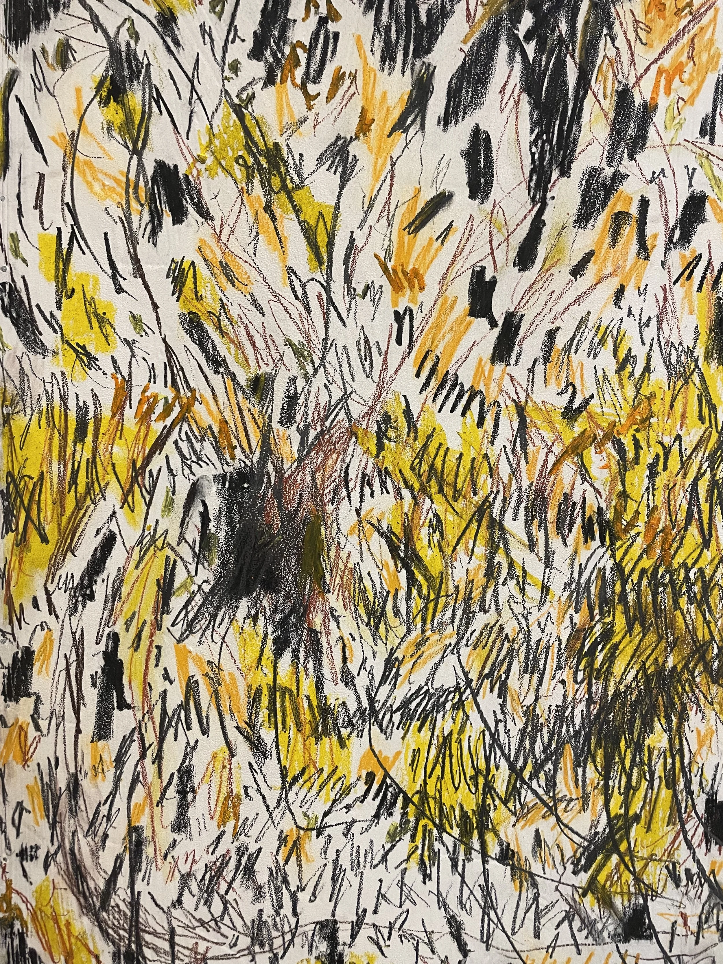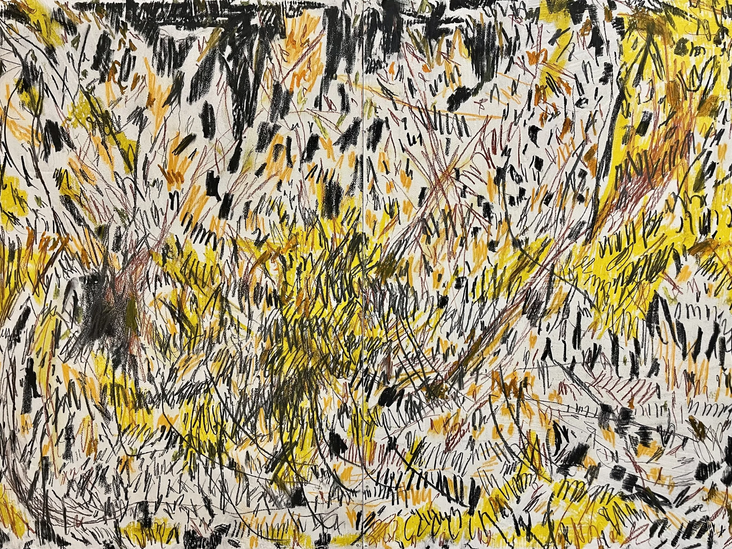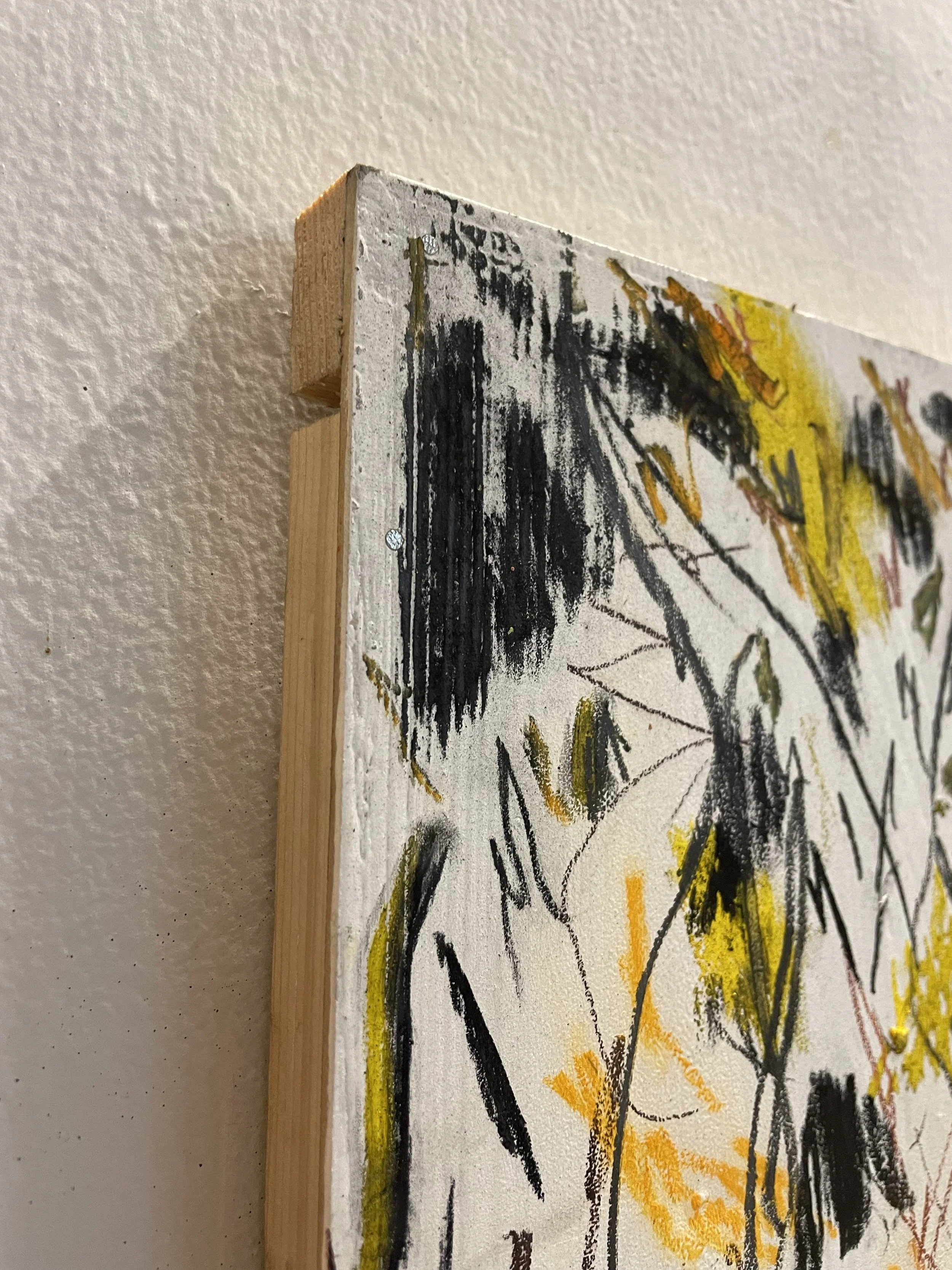 wallpaint, oilpastels, graphite and charcoal on wood, 61 x 87,5 x 2,2cm, 2021